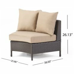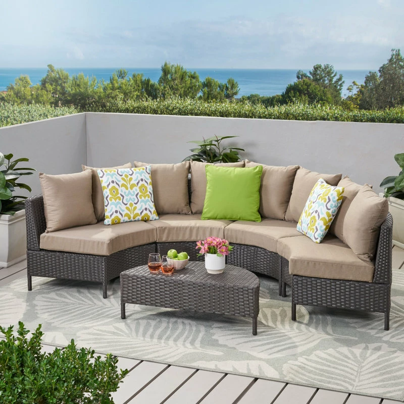 Open your backyard or patio space to all the possibilities that summer can offer starting with your outdoor seating. Constructed from beautifully woven wicker, our sectional sofa set fits together to create a half-circle shaped lounge with a matching table. This is finished with outstanding plush water-resistant cushions for incredible comfort for all your guests. Featuring a low profile style, this set not only offers a streamlined design that is ideal for smaller patios and spaces but also brings a refreshing atmosphere to your summer experience.
