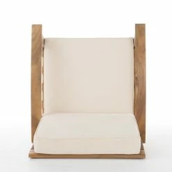 This deep seated set of chairs is great for any back yard. With their acacia wood frame, these chairs are sturdy; perfect for continued outdoor use. The thick cushions help provide continued and long lasting comfort, so you can spend all day outside. The cushions water resistant covering also help provide an easy to clean surface for all of life’s little messes.