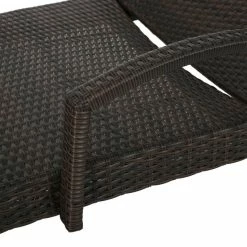 Add some stylish comfort to your patio decor with this wicker lounge now with arm rests. Both the chair and cushion are weather resistant and with an adjustable back and folding legs for easy stacking. Avalaible with select cushion colors.