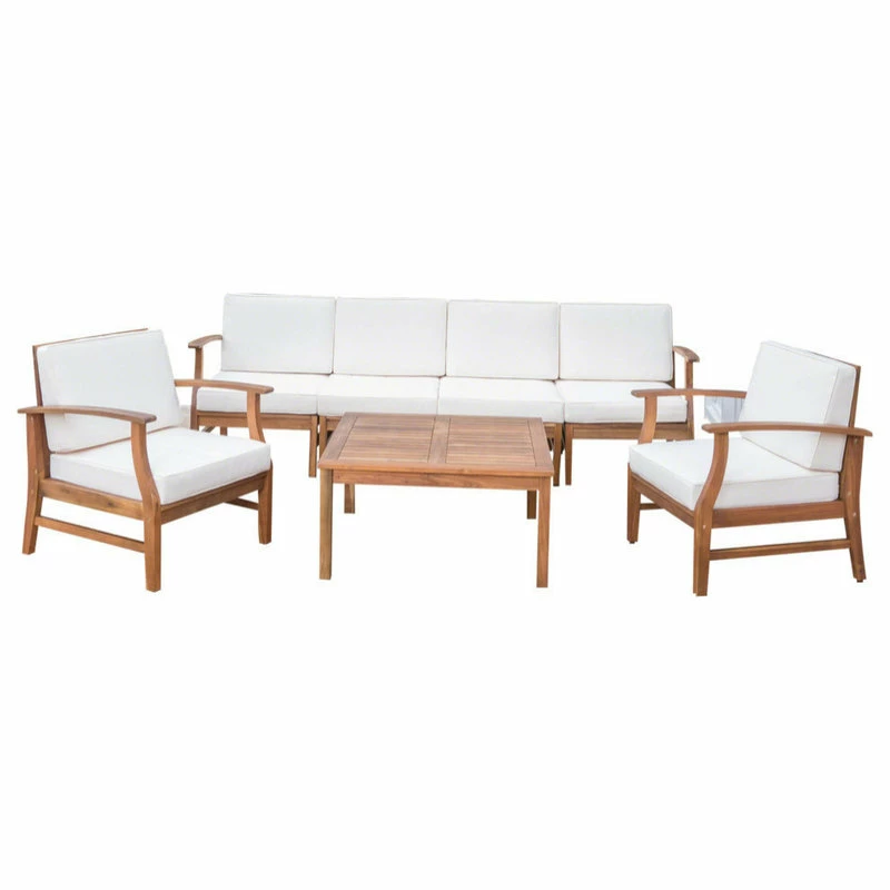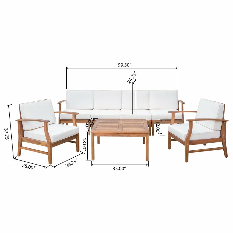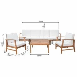 This chat set is the perfect way to add some relaxations space to your backyard. Complete with a four seater sofa, two club chairs, and coffee table for you to rest your drinks on, this set allows you and your friends and family to relax in the great outdoors in style. Made from sustainably sourced acacia wood paired perfectly with water resistant cushions, this set is sure to be a favorite every summer season.