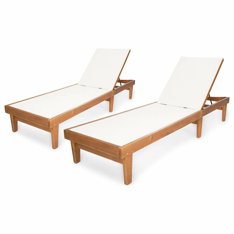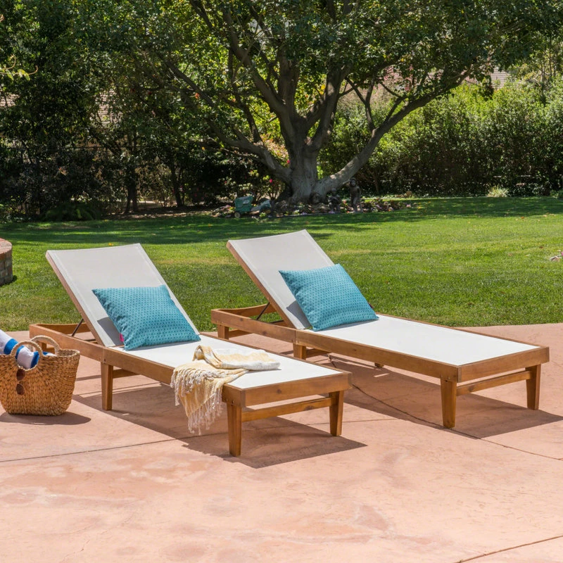 These outdoor chaise lounges are the perfect way to add some relaxation to you patio and backyard. Made from sustainably sourced acacia wood with a special made mesh for the seat, these lounges are both comfortable and stylish. Enjoy these lounges all summer long, and give yourself the freedom to relax with your favorite book or take a nap under the summer sun with these refreshing chaise lounges.