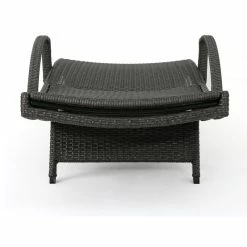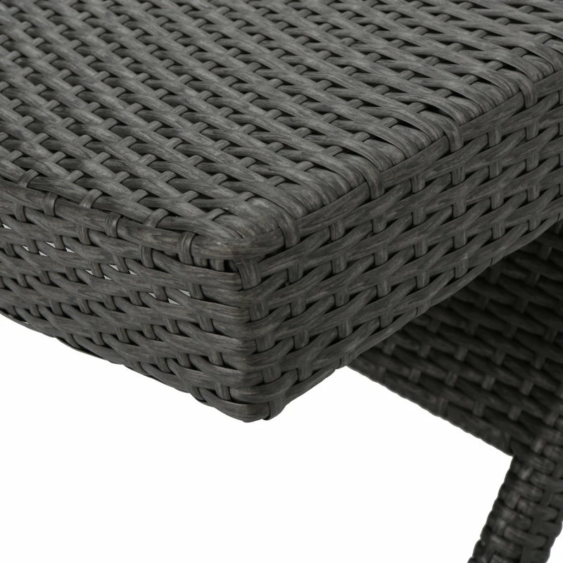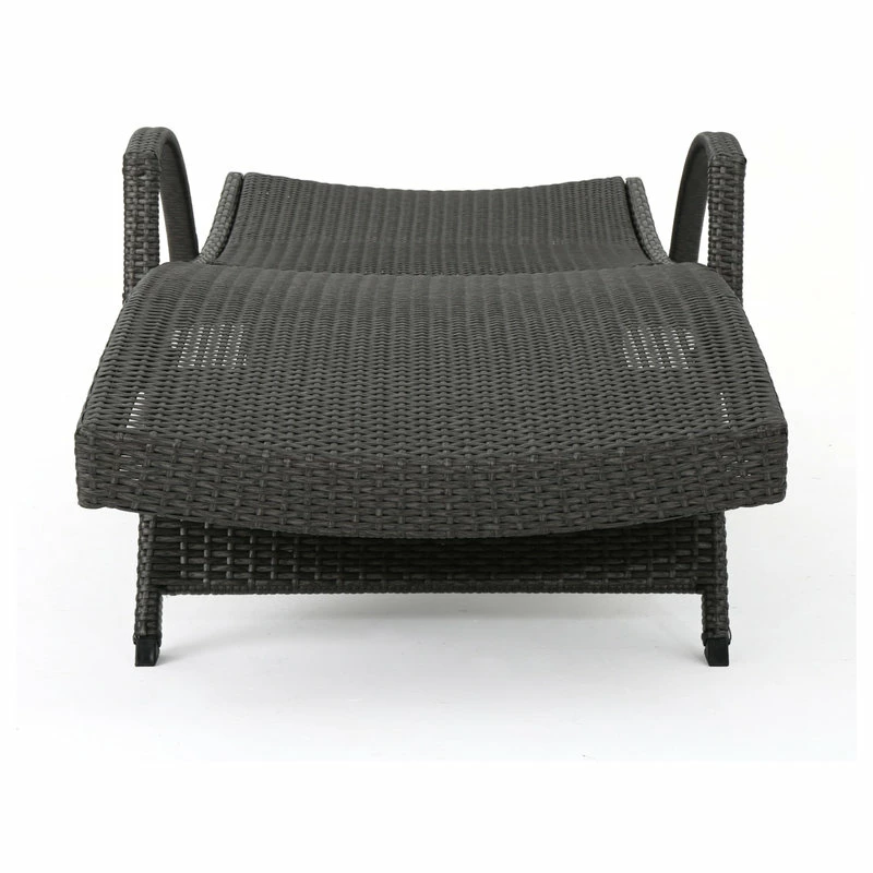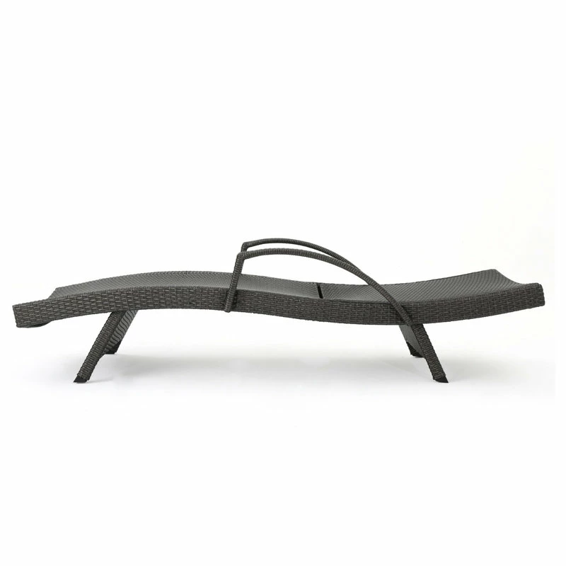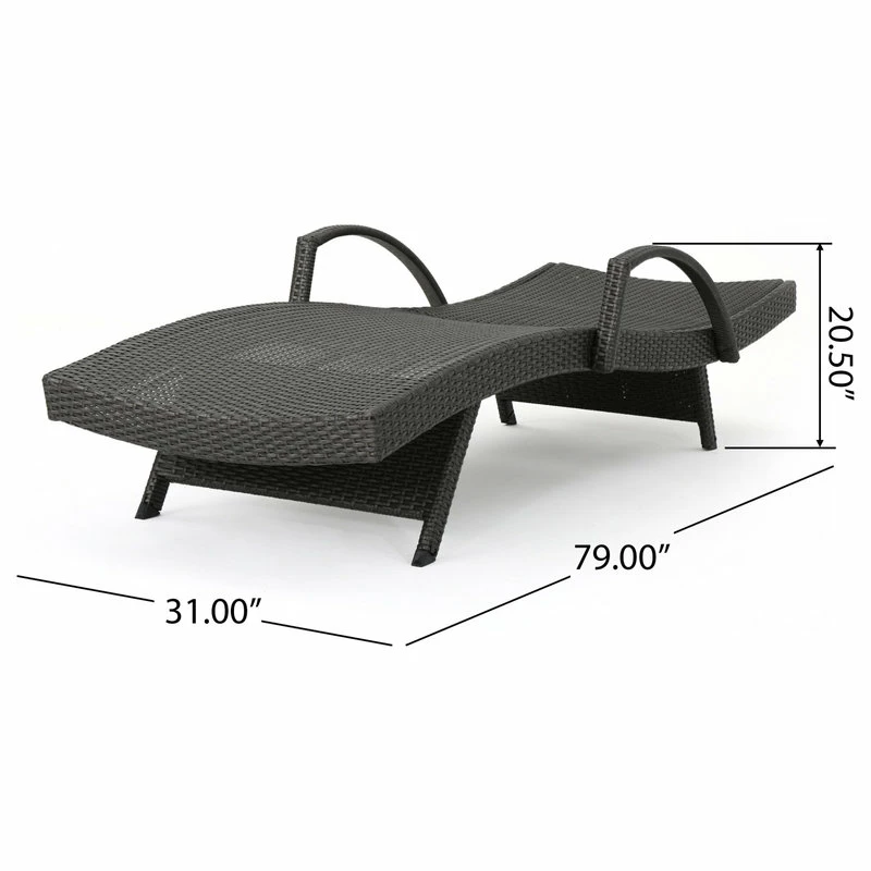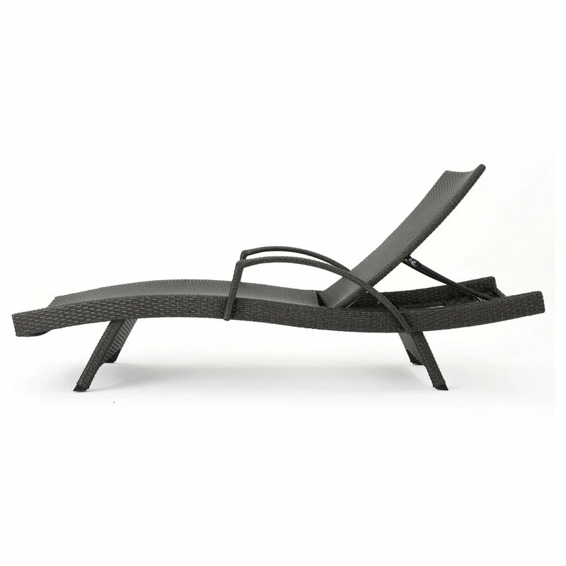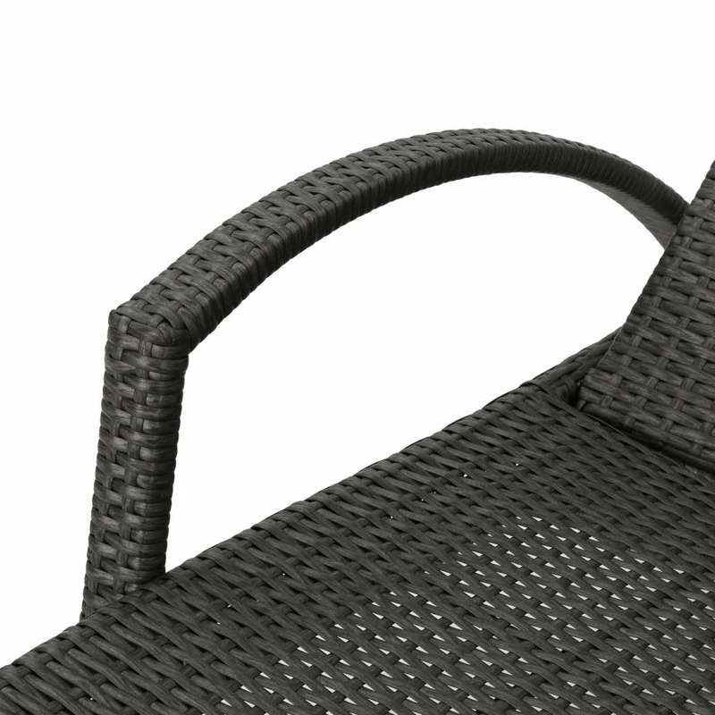 Add some stylish comfort to your patio decor with this wicker lounge now with arm rests. It is weather resistant and with an adjustable back and folding legs for easy stacking.