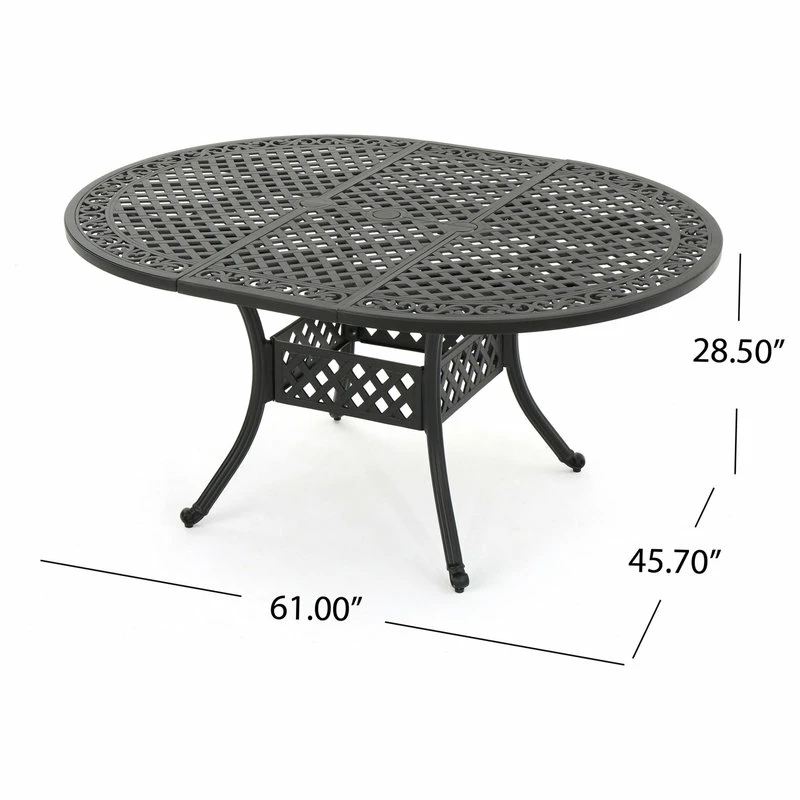 This expandable aluminum dining table is a great addition to any patio set up. With enough space for 4 to 6 chairs, you can start hosting the same day you get your table. Perfect for meals in your back yard or larger events where you can use this table as a buffet for your guests. The possibilities with this table are endless.