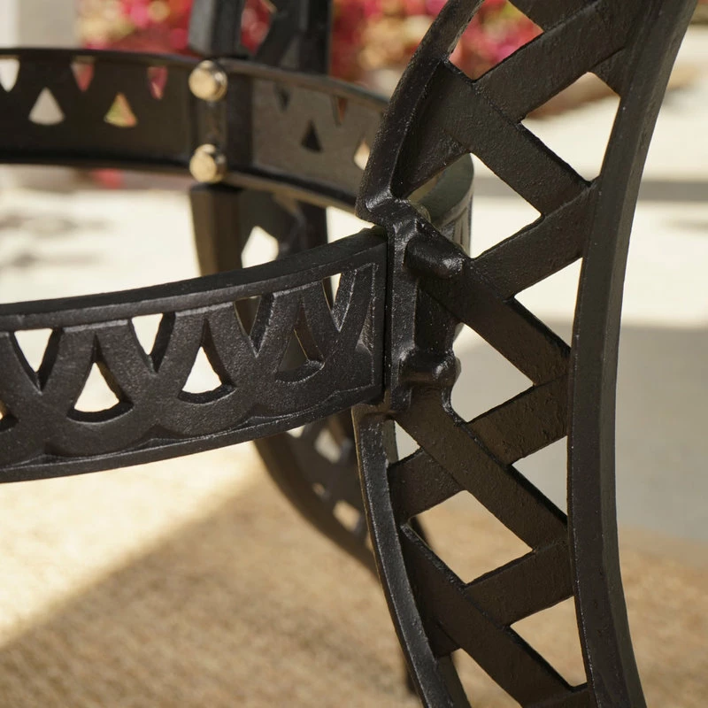 SCROLL DESIGN: The chairs of this set advertise a traditional scroll design that comes from French influences during the Baroque period. With this beautiful feature incorporated into the armrests and backrest of the chair, this set offers hand-crafted details that add an elegant touch to your outdoor decor.