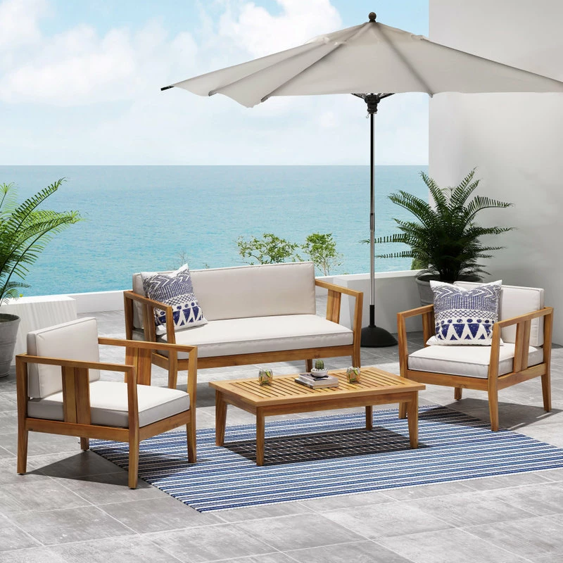 Keep things cozy in your backyard space with a charming chat set that opens up your home to endless possibilities, including family get-togethers and lively evening parties. Our exquisite chat set brings together rich acacia wood and slat paneling to create a breezy and comfortable space for your patio or backyard space. With plush water-resistant cushions, sturdy, solid frames, and beautiful modern design, this set will have no problem blending into your outdoor decor with its modern style and incredible durability.