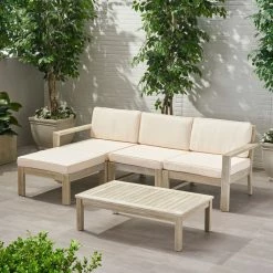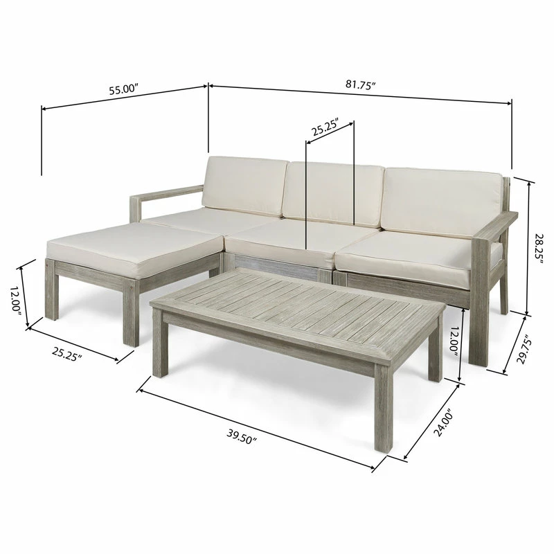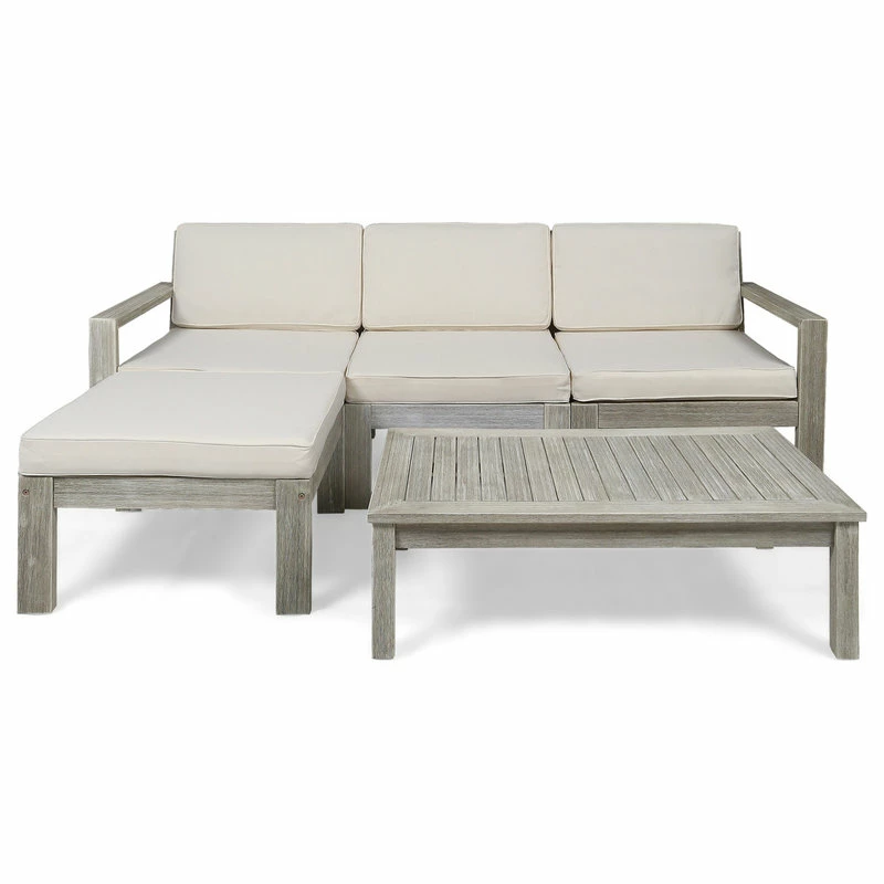 Lounge out under the warm sun with our L-shaped sectional that will complete your backyard or patio space. Whether you are looking to host a small afternoon get-together with a couple of friends or just looking for a place to stretch out, this sectional is perfect for you. Featuring a traditional open slat design, this sectional set offers a breezy and classic look for your home. Made with acacia wood and water-resistant fabric, this sectional set will withstand most weather conditions, allowing you to enjoy your summer to the fullest.