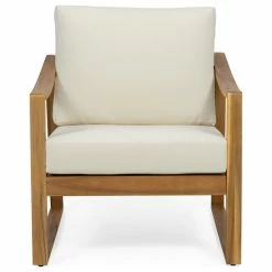 Complete your outdoor seating ensemble with a pair of chairs that will complement any space with a dash of charm. Made with a gorgeous acacia wood frame, these chairs are a sturdy addition to your backyard or patio that also offers a rich, natural look. The plush cushions help provide delightful comfort, so you can spend all day outside under the warm sun. Whether you are curling up with a good book or engaging in casual conversation, our set of club chairs will make sure you are as comfortable as you can be.