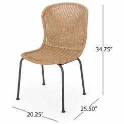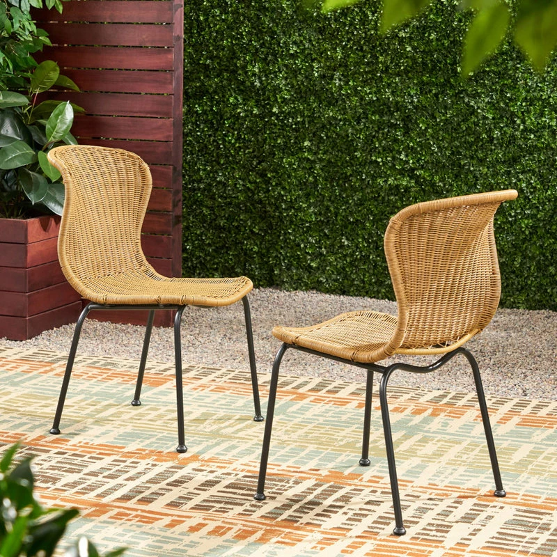 Spruce up your outdoor space with a beautifully crafted chair set that provides a whole new world of textures. Our set of chairs offers your dining set both cozy comfort and incredible style, making this the perfect addition to any home. Featuring a gorgeous wicker weave finish and thin sleek legs, these chairs bring your backyard together with some much-needed zeal. Showcasing lovely curved seating with a subtle scroll back, our lovely chairs are perfect for accenting your outdoor dining set with a dash of flair.
