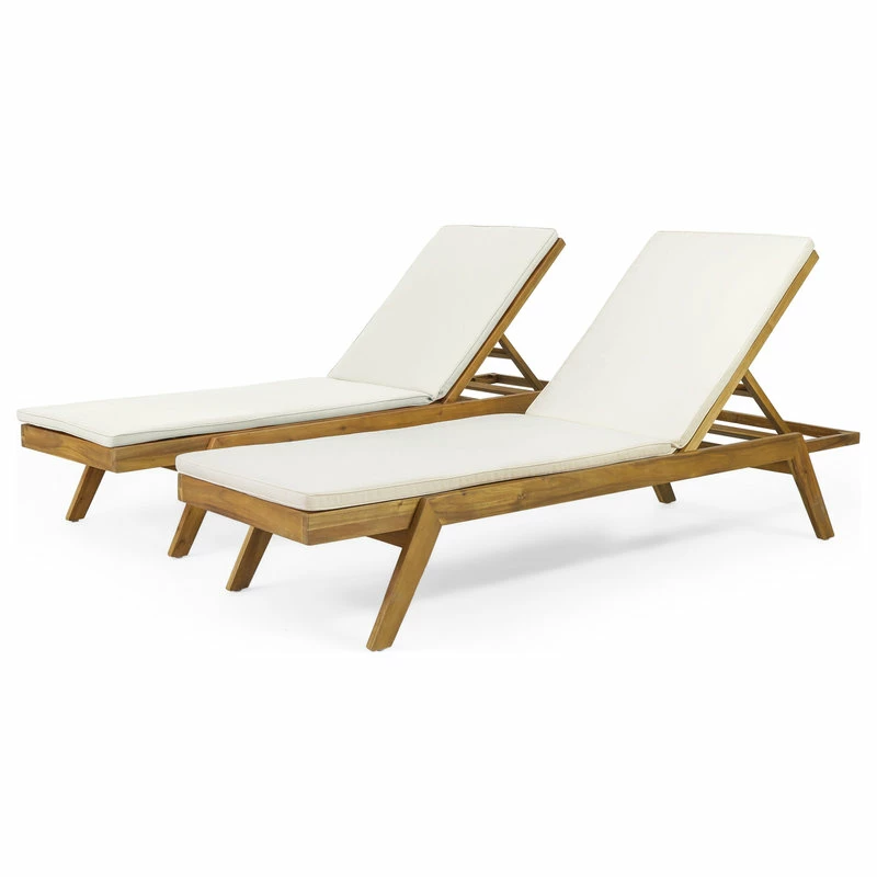 What better way to enjoy the warm rays of the great outdoors than with the perfect seating set? Ideal for family and friends alike, our chaise lounge set offers you outstanding outdoor comfort with its thin slat paneling and precise structure. Finished with an adjustable design, you can easily configure each chaise lounge to your liking, bringing you ultimate relaxation. This chaise lounge set is topped with cozy water-resistant cushions so that you can enjoy the breezy atmosphere of your outdoor space to the fullest.