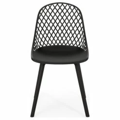 Outdoor dining has never been more appealing with the help of our outstanding chairs. Featuring weather-resistant properties and a unique plastic blend material, our outstanding outdoor dining chair set provides astonishingly stable frames that will last you for years to come. This minimalistic design balances clean-cut lines and a diamond mesh pattern to create an impressive look of sturdy structure and stylish comfort. Finished with a modern vibe, our chair set is sure to transform any backyard space into a refined masterpiece.