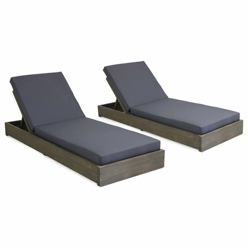 Balance streamlined, transitional style with sleek comfort to create your very own backyard oasis. Ideal for family and friends alike, our chaise lounge set offers you outstanding outdoor comfort with its box structure and open slat paneling. Finished with an adjustable design, you can easily configure each chaise lounge to your liking, bringing you ultimate relaxation. This chaise lounge set is topped with cozy water-resistant cushions so that you can enjoy the breezy atmosphere of your outdoor space to the fullest.