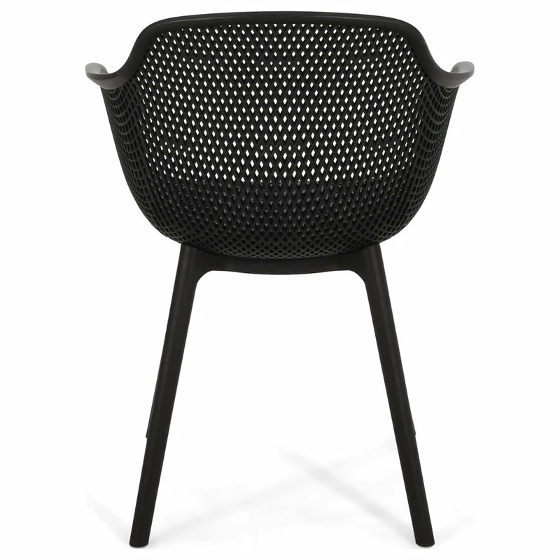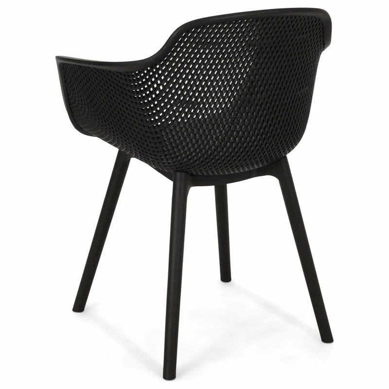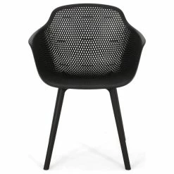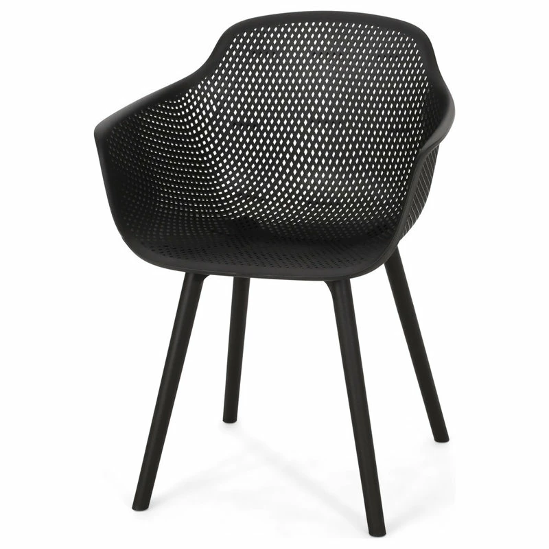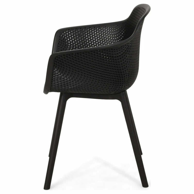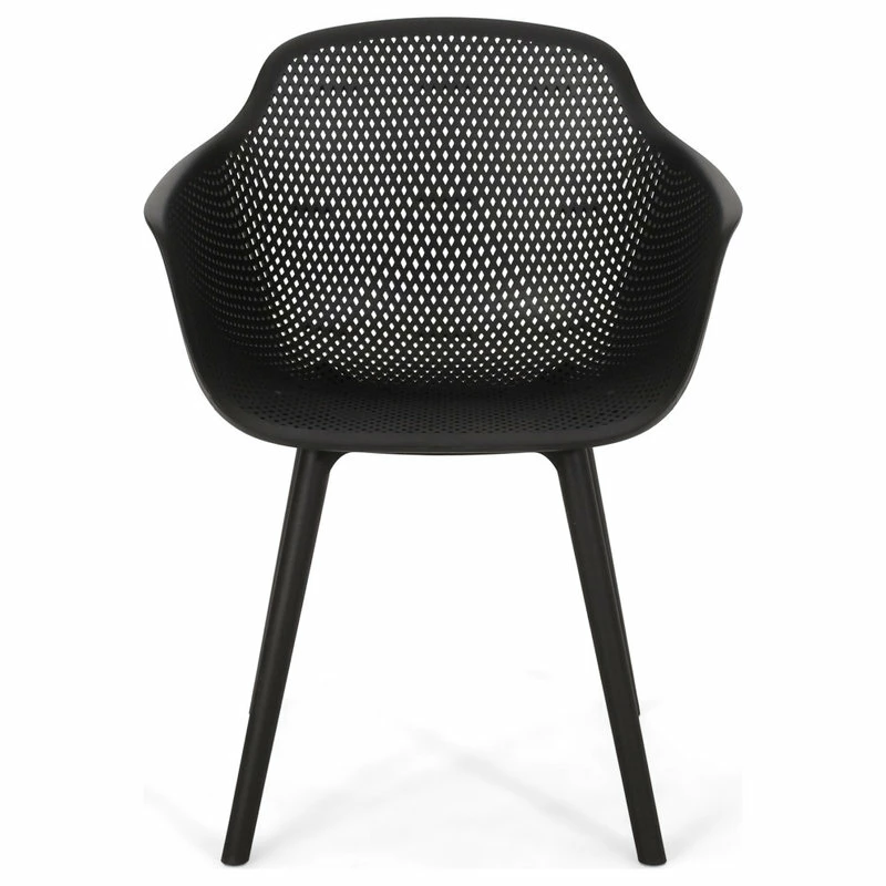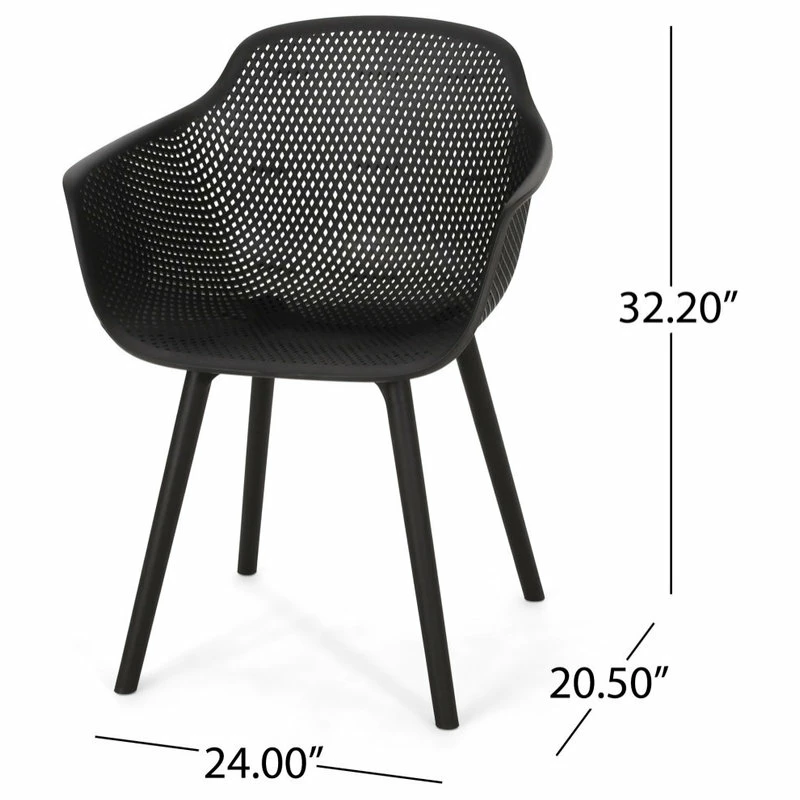Accentuate your outdoor dining set with chairs of stunning charm and convenient function. Featuring weather-resistant properties and a unique plastic blend material, our outstanding outdoor dining chair set provides astonishingly stable frames that will last you for years to come. This minimalistic design balances clean-cut lines and a perforated diamond pattern to create an impressive look of sturdy structure and stylish comfort. Finished with a modern vibe, our chair set is sure to transform any backyard space into a refined masterpiece.