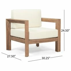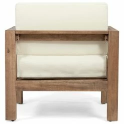 Anchor your backyard or patio space in a fresh and classy atmosphere with our set of club chairs. With immaculate lines and precise angles, this chair set gives your outdoor area a sleek, clean look. This includes a streamlined structure with its open backrest and open slat seating, making this a breezy accessory for your decor. Featuring acacia wood frames with plush water-resistant cushions, these chairs are as functional as they are comfortable. Resistant to outdoor elements, this set is the perfect addition to your lounge space for the summer season.