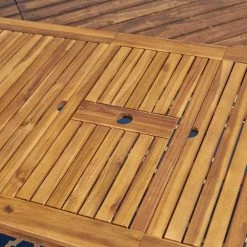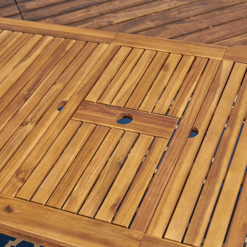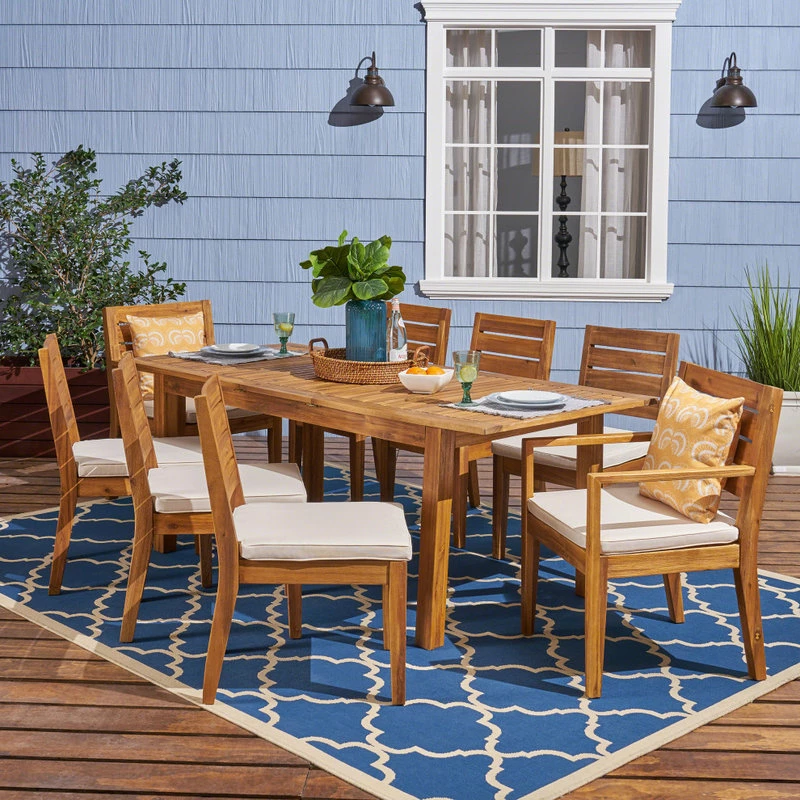 Why go out when you and your family can dine in in an equally fabulous environment at home? This acacia wood dining set includes six cushioned armless chairs and two similarly-upholstered seats with arms for each end of the table, offering a slightly more sophisticated look than the usual standard. This timelessly stylish ensemble’s expandable dining table affords you the real estate a properly lavish meal demands while also allowing you to contract it when not in full use.