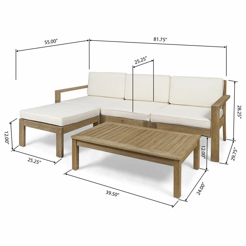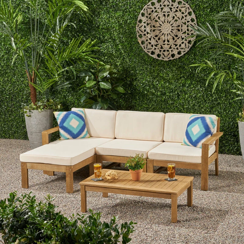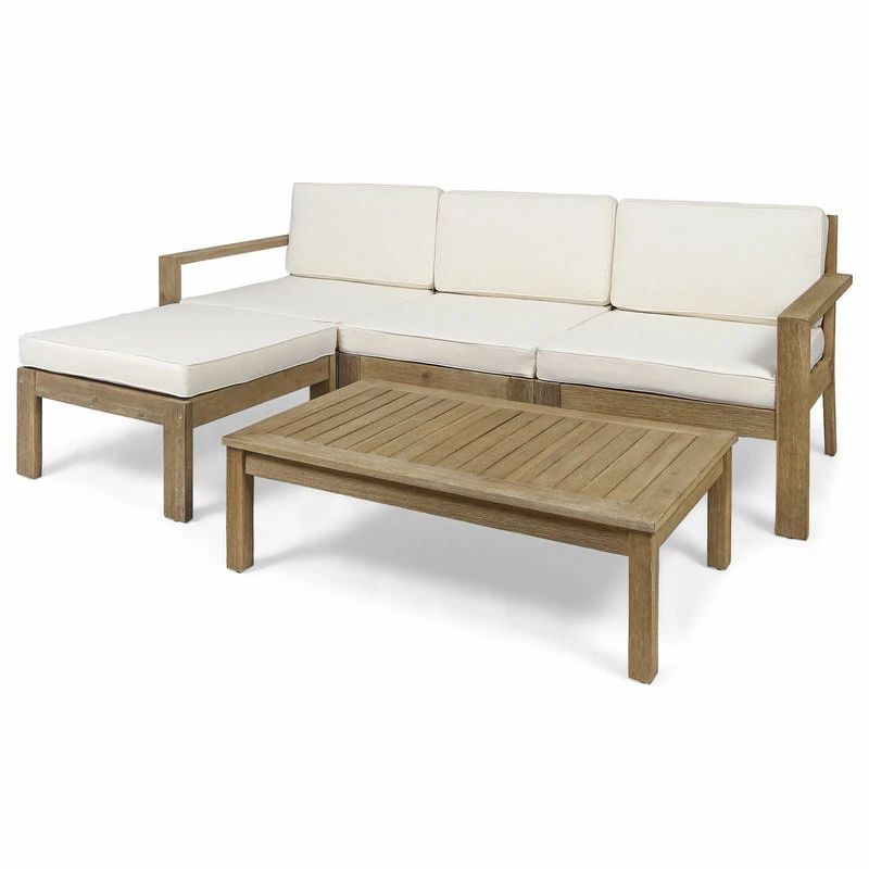 Lounge out under the warm sun with our L-shaped sectional that will complete your backyard or patio space. Whether you are looking to host a small afternoon get-together with a couple of friends or just looking for a place to stretch out, this sectional is perfect for you. Featuring a traditional open slat design, this sectional set offers a breezy and classic look for your home. Made with acacia wood and water-resistant fabric, this sectional set will withstand most weather conditions, allowing you to enjoy your summer to the fullest.