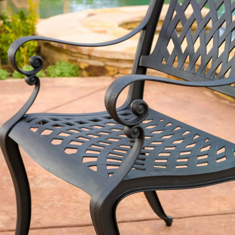 CAST ALUMINUM FRAME: This chair set is built with cast aluminum molding, creating a lightweight and stable frame. This material is rust resistant which will further extend the life of your product.