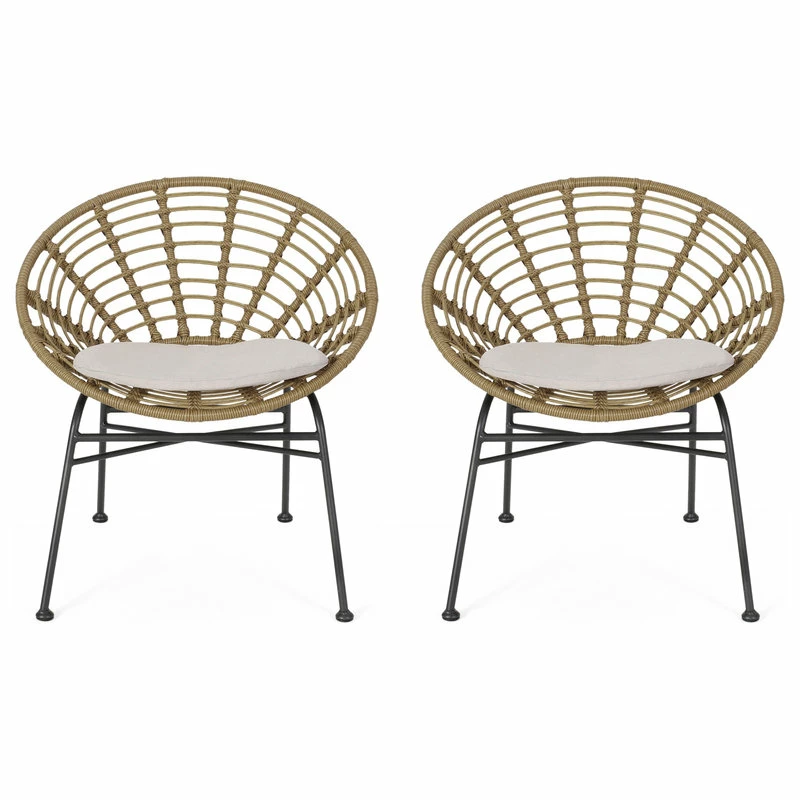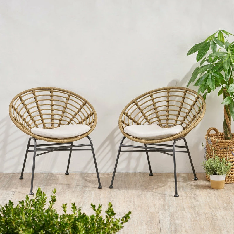 Bring home a timeless look to your backyard dining experience with our incredibly cozy basket chair. With a thin angled frame, our dining chairs are crafted to superior excellence that maintains a minimalistic yet durable structure. This chair set also perfectly blends rattan and metal to bring your outdoor space together with an effortlessly stylish flair. The wrapped rattan finish and gorgeous concentric design offer a modern twist to a classic look, making this ideal for any style of outdoor dining.
