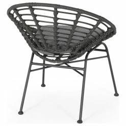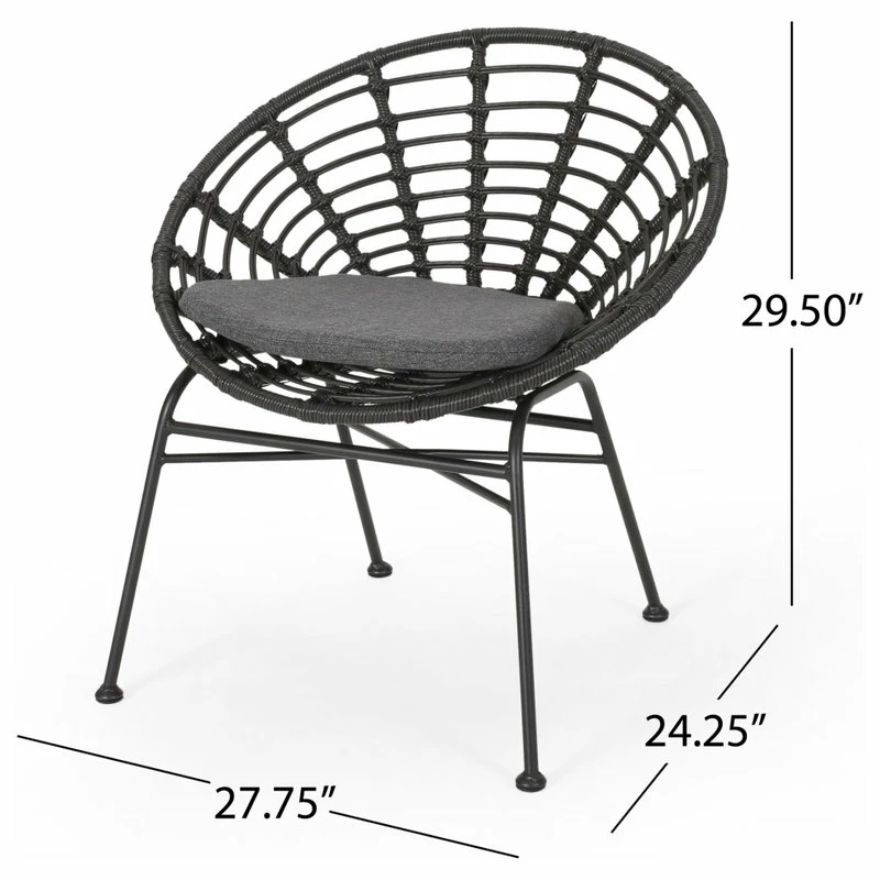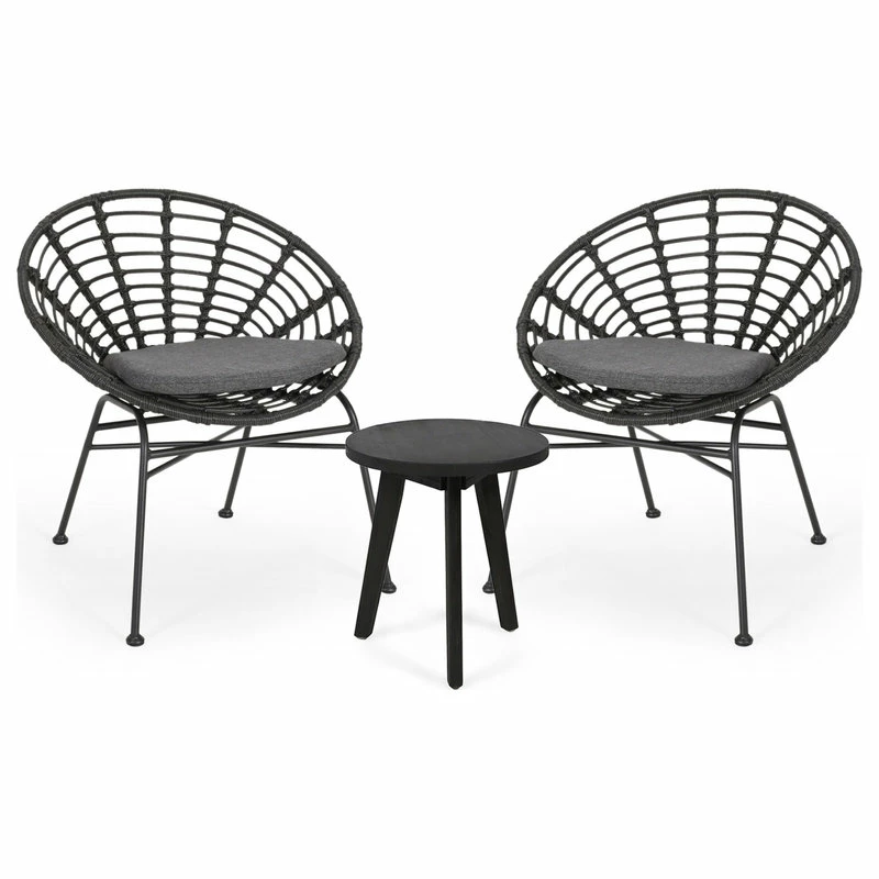 Sit back and enjoy the summer sun in a chat set that will cradle your body into a blissful state of relaxation. This set perfectly pairs the natural looks of wood and rattan wrapping with sleek, black metal to bring your outdoor space together with an effortlessly stylish flair. With an acacia wood side table and basket chairs made with thin angled frames and rattan finish, our chat set is crafted to superior excellence, offering assuring durability, ultimate comfort, and charming design.
