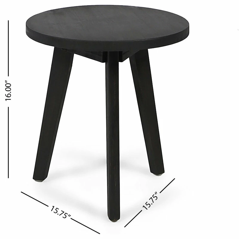 ROUND TABLE: This set includes a round side table that has a diameter of 15.75 inches and is 16.00 inches high. Its long, gorgeous tapered legs and round top pairs perfectly with the circular shape of the chairs.
