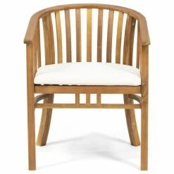 Bring fine dining to your outdoor space with our set of acacia wood armchairs. Combining an open slat design with an elegantly curved backrest, our club chair will be a flawless addition to any backyard or patio. From wonderful evening dinner parties to simple afternoon relaxation, this set of armchairs is a dream for those who love to personalize their space. With solid acacia wood frames and plush outdoor cushions, this chair offers hours of conversation for you and your guests.