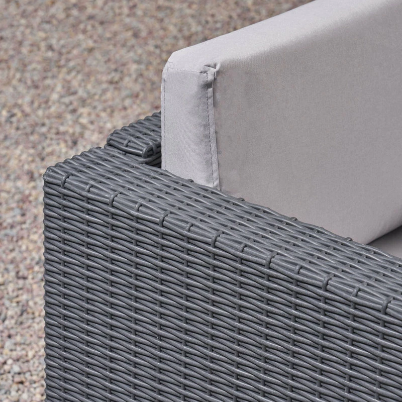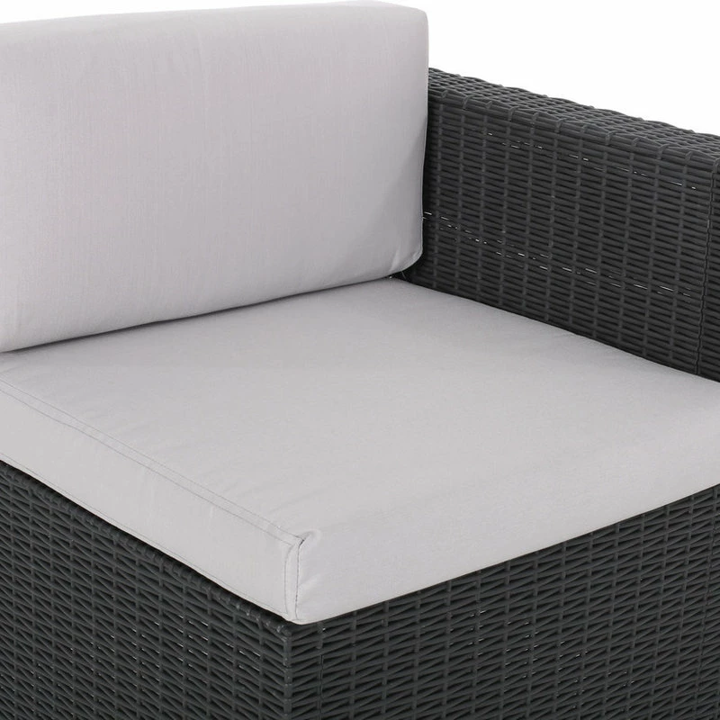 Lounge comfortably with your family and friends in a refreshing outdoor breeze with our incredible sofa sectional set. Featuring weather-resistant cushions and remarkable polypropylene material, our outstanding sofa sectional uses injection molding to create an astonishingly stable fame that will last you for years to come. This minimalistic design balances clean cut lines and precise angles with an impressive natural look to create a sturdy structure that is held together with clips and brings an extra boost of comfort to your home.