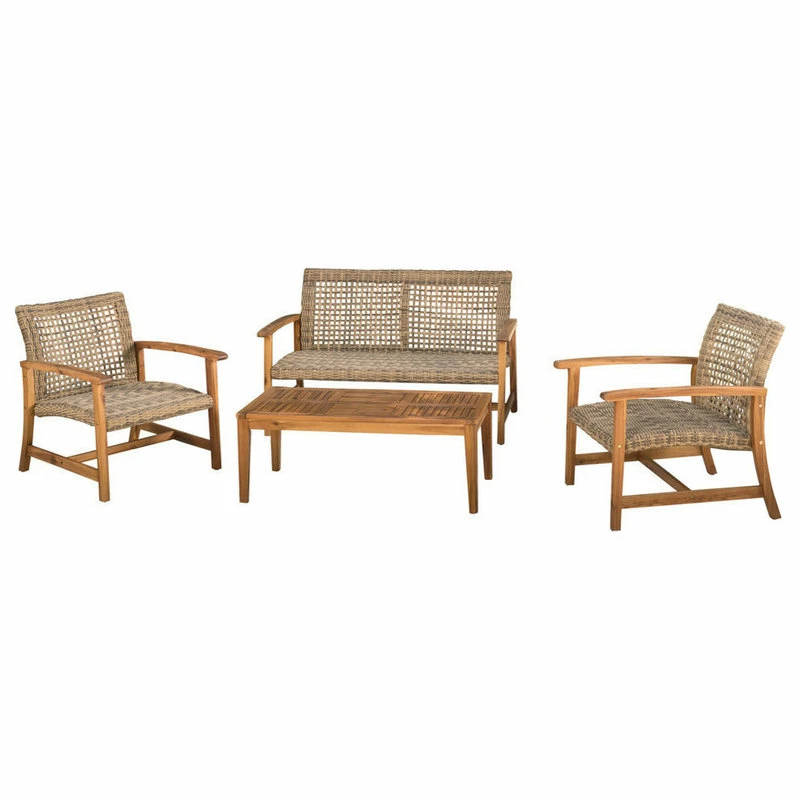 This premium outdoor chat set is perfect for entertaining groups. This set features high quality wicker over an acacia and wood construction that is built to last for years and years. Durable and attractive, it features theHest quality materials and will hold up to the demands of summer barbecues, garden parties, and afternoons spent lounging.
