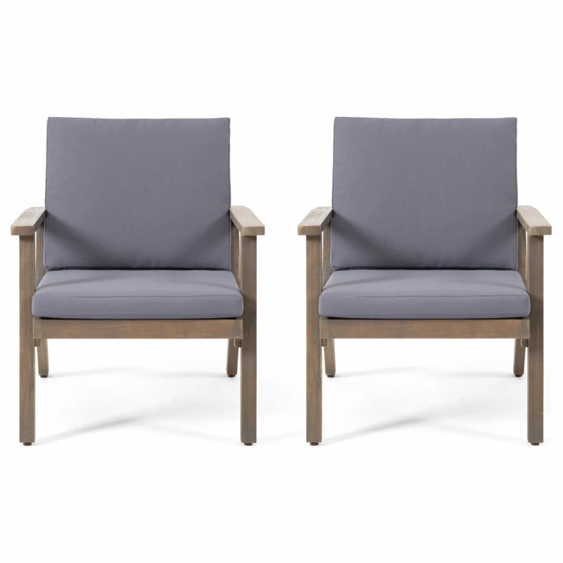 Capture the essence of outdoor lounging with a set of cozy clubs chairs. With immaculate lines and precise angles, this chair set gives your outdoor area a sleek, clean look. This includes a streamlined structure with its open slat backrest and seating, making this a breezy accessory for your decor. Featuring acacia wood frames with water-resistant cushions, these chairs are as functional as they are comfortable. From weekend afternoons on your patio to poolside lounging, our club chairs are sure to keep your outdoor space in style.