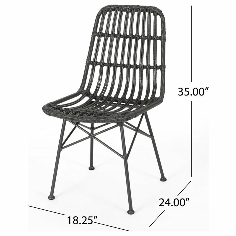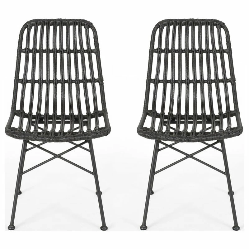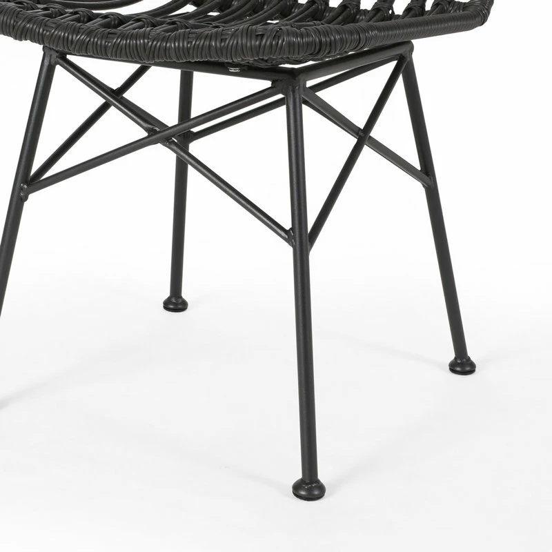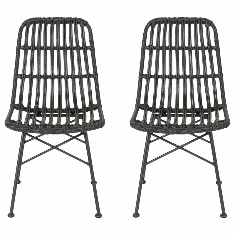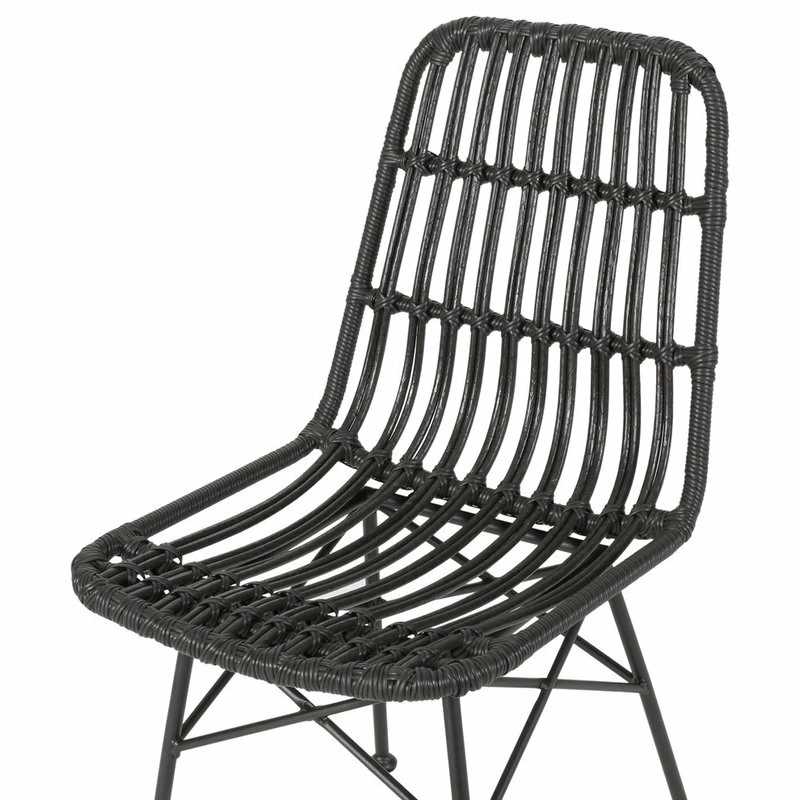 Every outdoor dining set should be equipped with chairs that are as stylish as they are comfortable. Our set of chairs brings a modern twist to a classic look with its perfect blend of rattan and metal. Featuring a beautifully wrapped rattan design and thin angled frame, this chair set brings your outdoor space together with a subtle flourish. These dining chairs provide a minimalistic yet durable structure that is crafted to superior excellence, making these ideal for any style of backyard or patio space.
