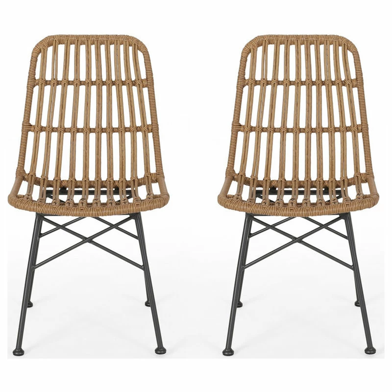 Every outdoor dining set should be equipped with chairs that are as stylish as they are comfortable. Our set of chairs brings a modern twist to a classic look with its perfect blend of rattan and metal. Featuring a beautifully wrapped rattan design and thin angled frame, this chair set brings your outdoor space together with a subtle flourish. These dining chairs provide a minimalistic yet durable structure that is crafted to superior excellence, making these ideal for any style of backyard or patio space.