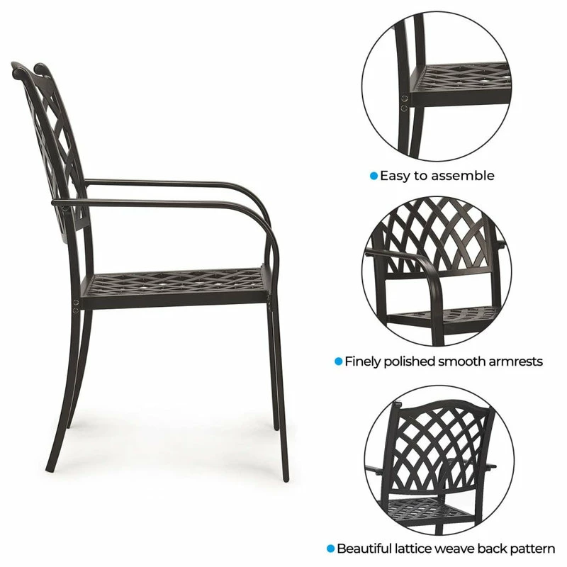 Coming with a sleek and simple look, this metal dining set can match harmoniously with other furniture styles. And the modern design adds a sense of decoration to your outdoor environment. The metal armchair and table can be placed in a variety of places, such as a garden, lawn, balcony, and swimming poolside.