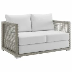 Weave conversational threads into a rollicking good time with Aura Outdoor Patio Collection. Aura comes with a synthetic gray-on-gray tone wicker rattan weave and a powder-coated aluminum frame that delivers a softly versatile outdoor collection that shifts to meet the needs of the moment. Outfitted with machine washable and fade resistant all-weather fabric cushions, and designed with an extra wide and deep body, Aura will make your outdoor spot the focal point of good memories and festive gatherings while enhancing your patio, backyard or poolside arena. Featuring thick cushions and chrome plated anti-skid feet, enjoy spacious seating and enhanced comfort with this reliable piece of outdoor furniture. Comes fully assembled.