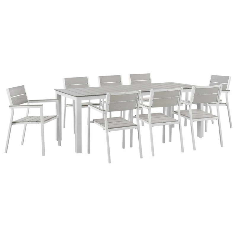 Bordered by the Atlantic Ocean rests the Maine Outdoor Series. Distinguished for its wooden plank boards and inspired design, Maine stands out as a refreshing arrangement for outdoor get-togethers. Made of solid polywood with a light gray finish, the natural wood grain design presents a rich organic feel, while pairing nicely with the aluminum frame. The Main Outdoor Series is a minimalistic piece perfect for contemporary patios, backyards, poolsides, and other outdoor lounge areas.