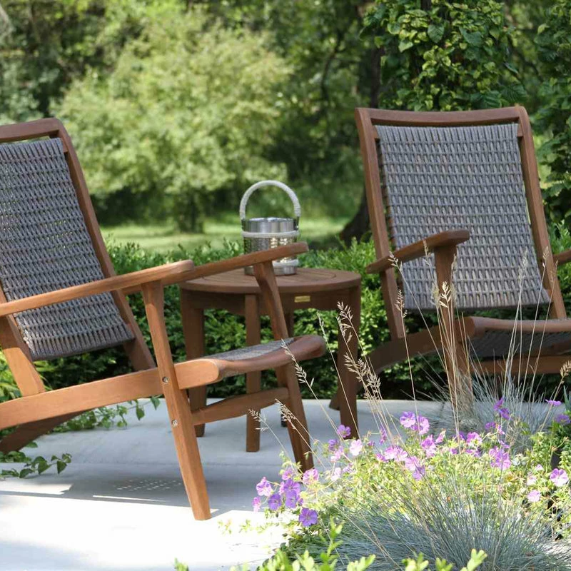 This All-Weather Wicker and Eucalyptus Lounge Set has been designed with our comfortable and carefree driftwood grey textured HDPE all-weather woven wicker. The round accent table is also made from eucalyptus.