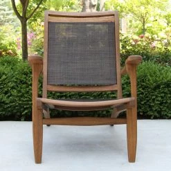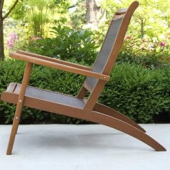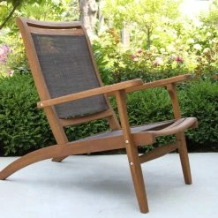 - Materials: sustainable plantation-grown eucalyptus and woven resin sling fabric