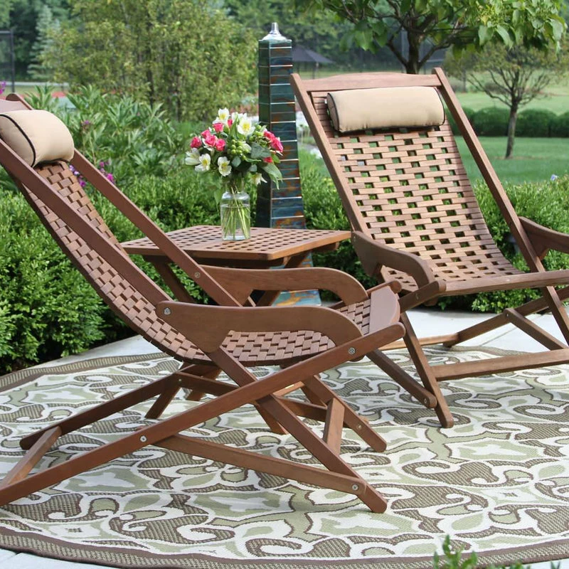 The 3 pc. Eucalyptus Folding Swing Lounger Set requires no assembly and folds for storage and portability.