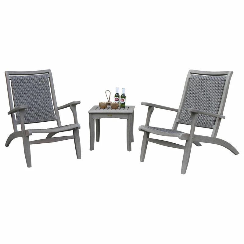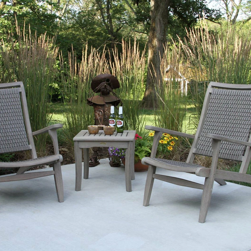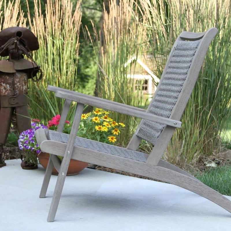 The wicker and eucalyptus lounger has the comfort of an Adirondack chair and a modern, elegant style for any outdoor setting. The grey wash texturing process begins with machine and hand brushing to create a grainy texture and vintage look. Three coats of high-quality all-weather stains are applied for an elegant look and feel.