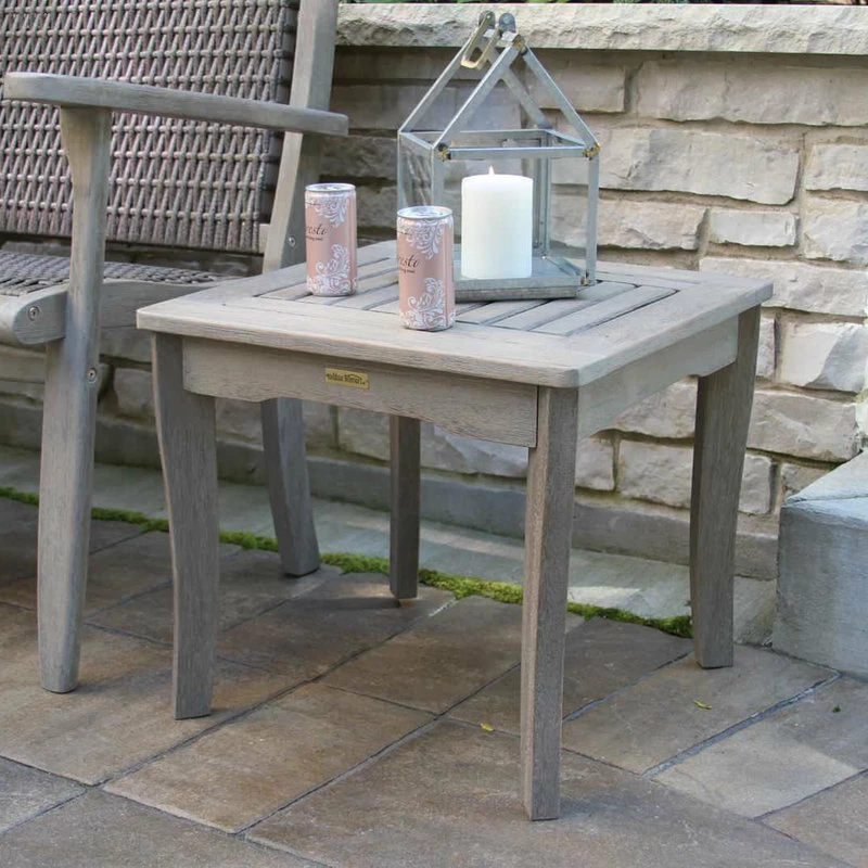 Our Gray Wash Collection requires less maintenance than other natural eucalyptus, teak, or stained hardwoods. Yet, oiling can help prolong and rejuvenate the finish. Depending on the amount of exposure to the elements, the finish may fleck and weather, allowing the eucalyptus to then naturally patina when left outside. Always cover or store away your furniture during harsh weather and winter.