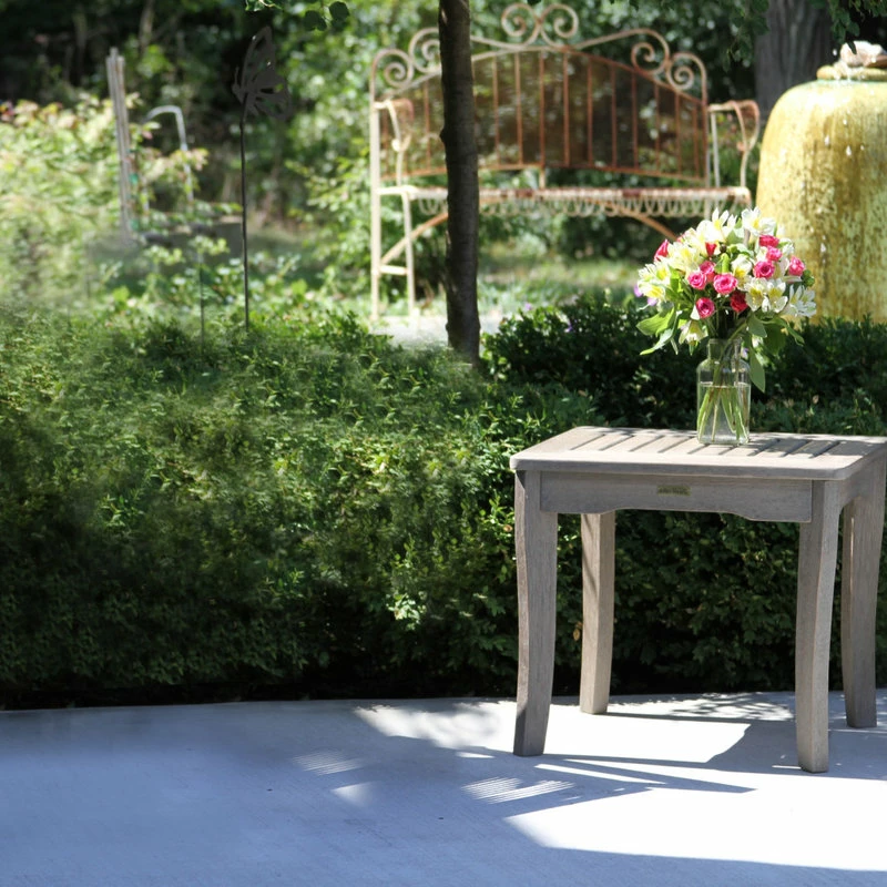 Our Gray Wash Collection requires less maintenance than other natural eucalyptus, teak, or stained hardwoods. Yet, oiling can help prolong and rejuvenate the finish. Depending on the amount of exposure to the elements, the finish may fleck and weather, allowing the eucalyptus to then naturally patina when left outside. Always cover or store away your furniture during harsh weather and winter.