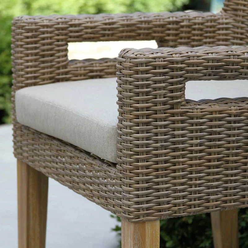 - Materials: plantation-grown Eucalyptus, HDPE all-weather wicker, Olefin performance fabrics, and poly-resin & powdered concrete blend