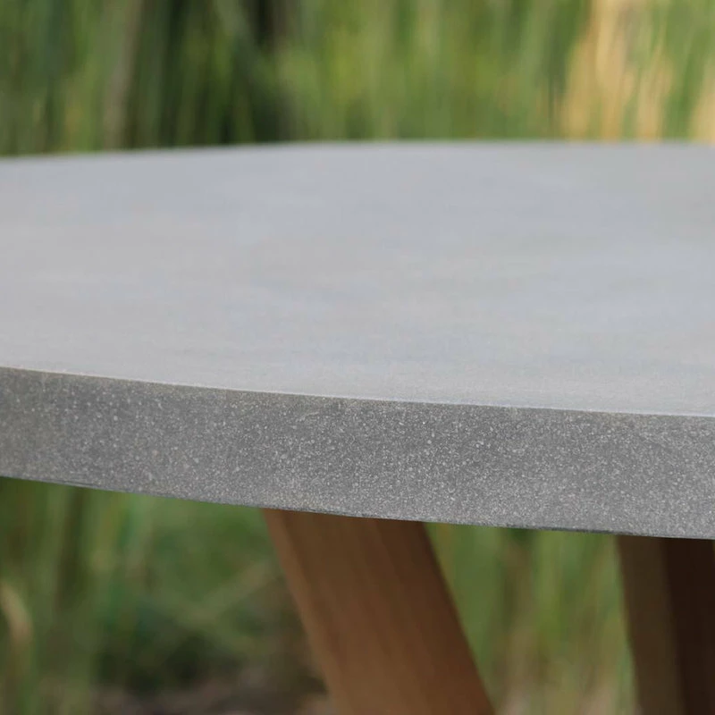 - Materials: 100% FSC teak, polyresin and powdered concrete blend, Sunbrella branded fabrics, and HDPE all-weather wicker