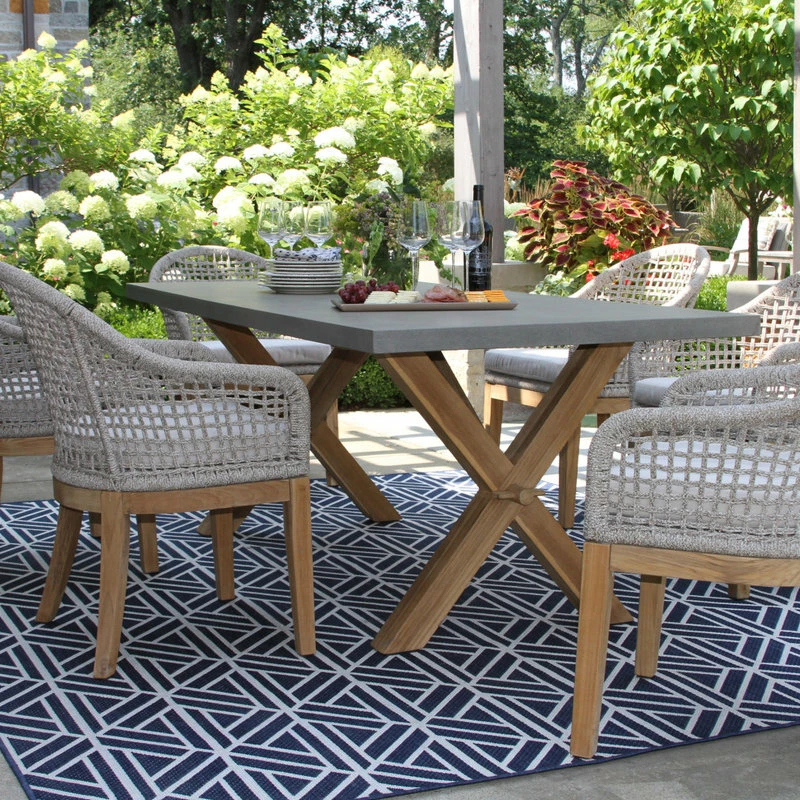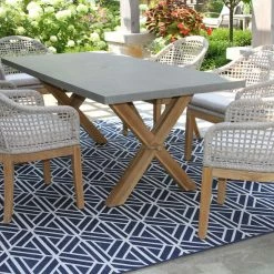 This 7-piece outdoor dining set includes six chairs with plenty of room for each guest or family member on your patio. The trestle table features a concrete tabletop and a solid teak wood base that weathers to classic gray over time to bring a French country style to your backyard. There’s also an opening in the middle for an umbrella (sold separately). This entire set is weather-resistant, so you can leave it outside, no matter the conditions.