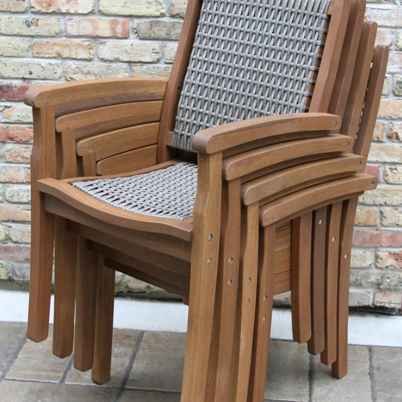 - Materials: sustainable plantation-grown eucalyptus and HDPE all-weather wicker