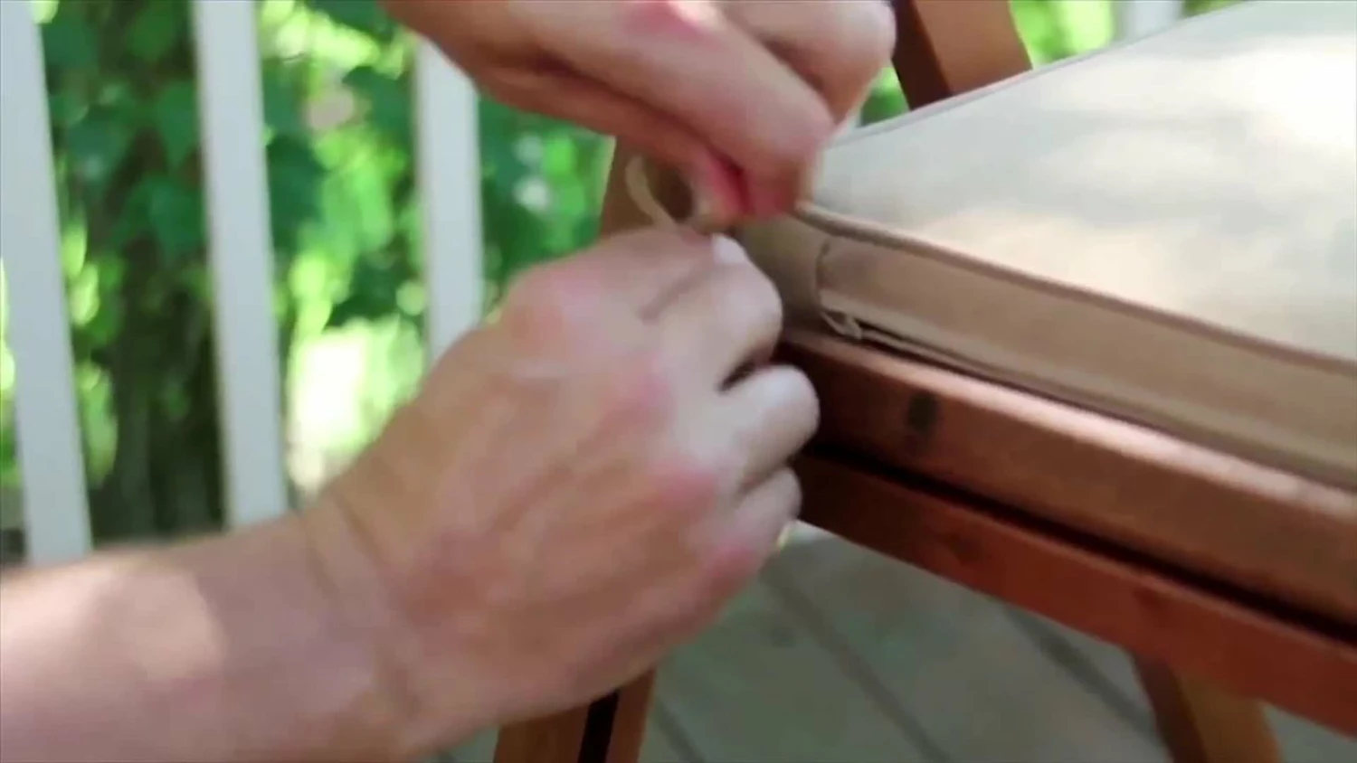 - Color: Umber brown stain and tan cushions