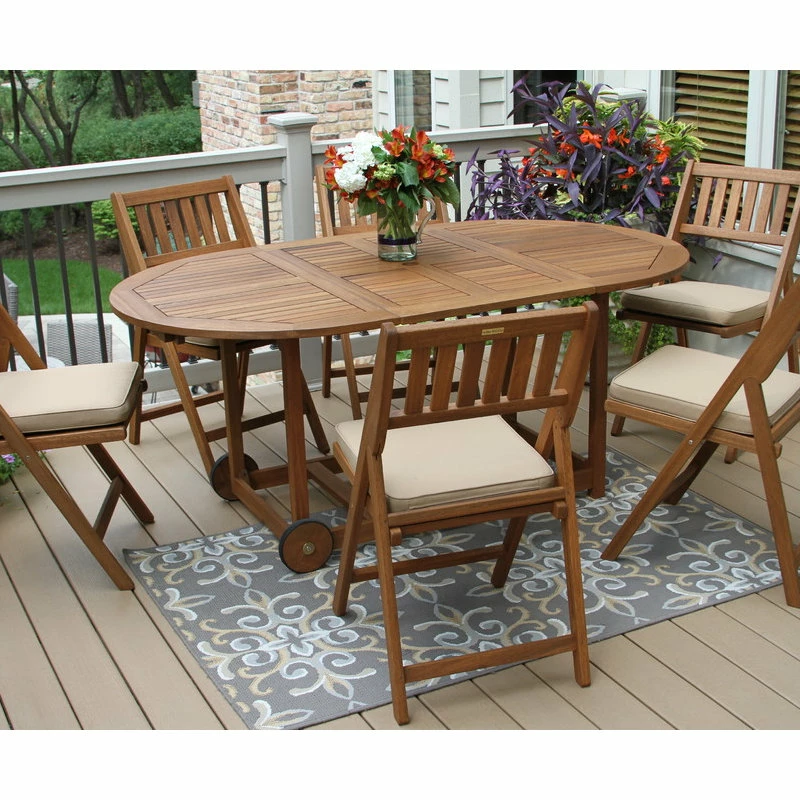 To maintain the stained finish of your Eucalyptus furniture, we recommend teak oil or refined/boiled linseed oil to be used in the spring and summer. Always cover or store away your furniture during harsh weather and winter.