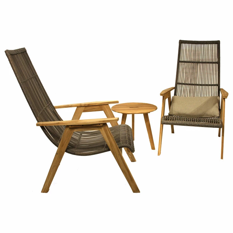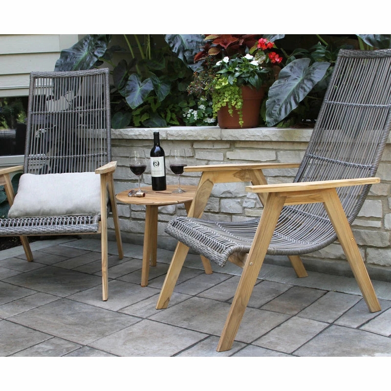 The Idra 3-Piece Outdoor Lounge Chair Set provides a chic, modern style to your patio or outdoor space. With a mid-century modern round table and two teak and wicker upholstered chairs, the only thing thatβs missing is a cool drink and some sunshine. This stylish set is the perfect addition to any home.