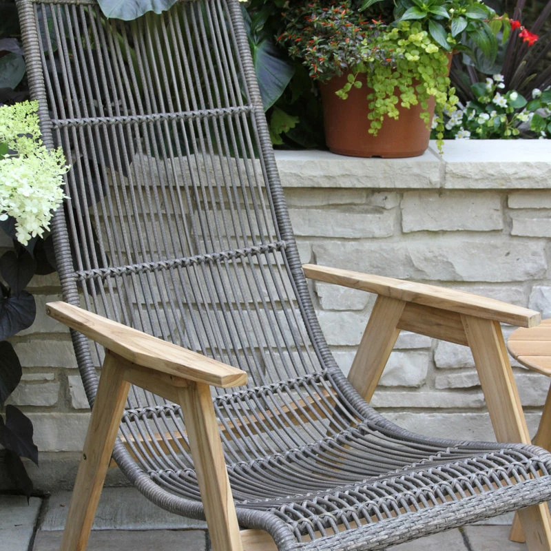 - Materials: 100% FSC teak, HDPE all-weather wicker, protective resin footpads & stainless steel hardware