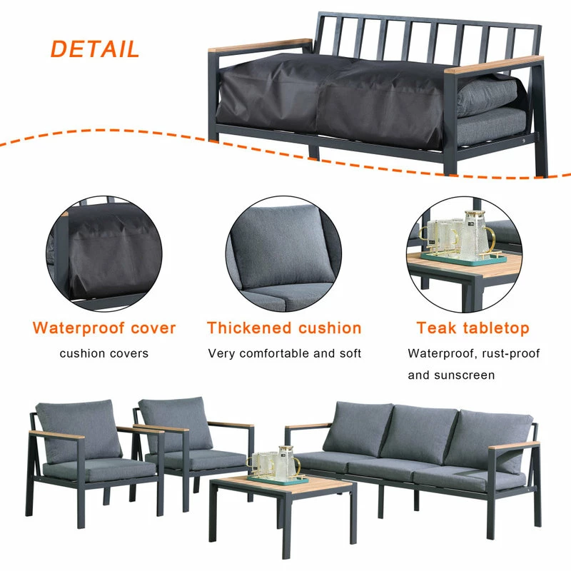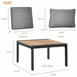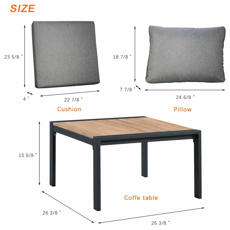 Comfortable&Environmental Friendly – These patio sofas and coffee table are made of environmental friendly power coating and natural teak, also the cushion is easily degradable. Inclined backrest conforms to ergonomics.