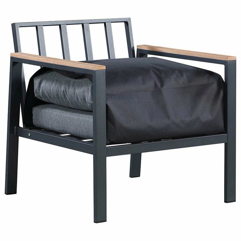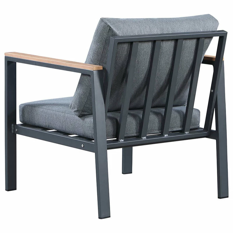 Excellent Quality – Top level raw materials used. A true touch of the heart and a feast for the eyes with teak tabletop on the Rossio collection. The teak wood, with good polish surface treatment. The metal frame is space Shuttle Level aluminum with surface powder coating. The Olefin fabric will be fadeless in 3 years. You will get a top and durable outdoor modular sectional sofa in Rossio.