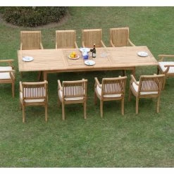 Our Teak Dining Set is a uniquely modern interplay of very durable teak wood featuring our beautiful Teak Chairs. Our teak wood is certified to withstand the rigors of adverse climates however because of Teak’s well known micro-smooth finish and quality craftsmanship many use our furniture indoors as well. Rich in oil finely grained and precisely fashioned with mortise-and-tenon joinery.