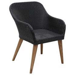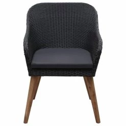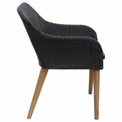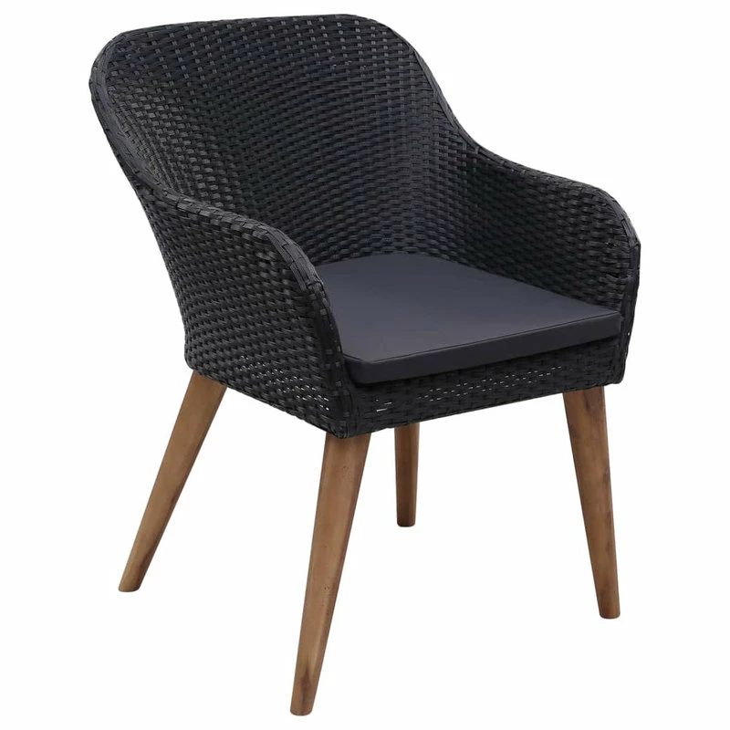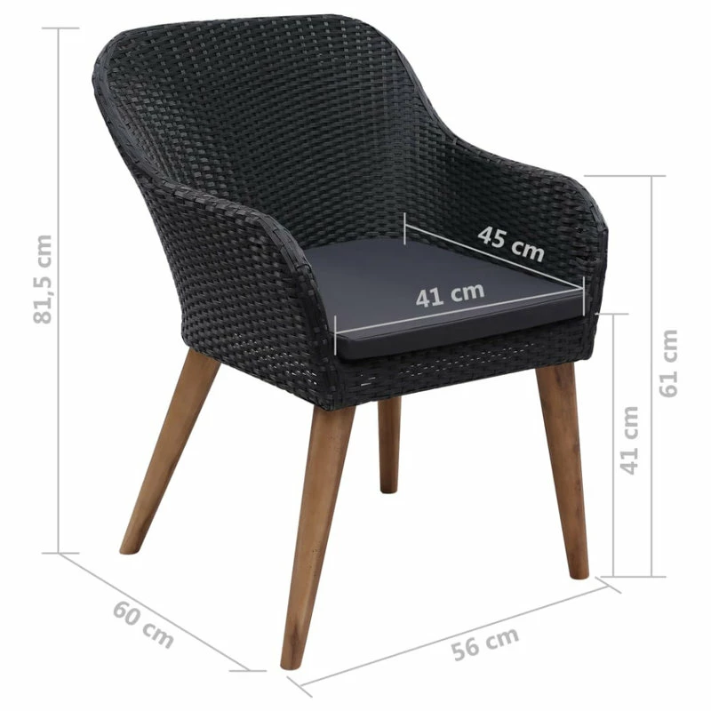 - Material: Poly rattan + powder-coated steel frame + solid acacia wood with an oiled finish